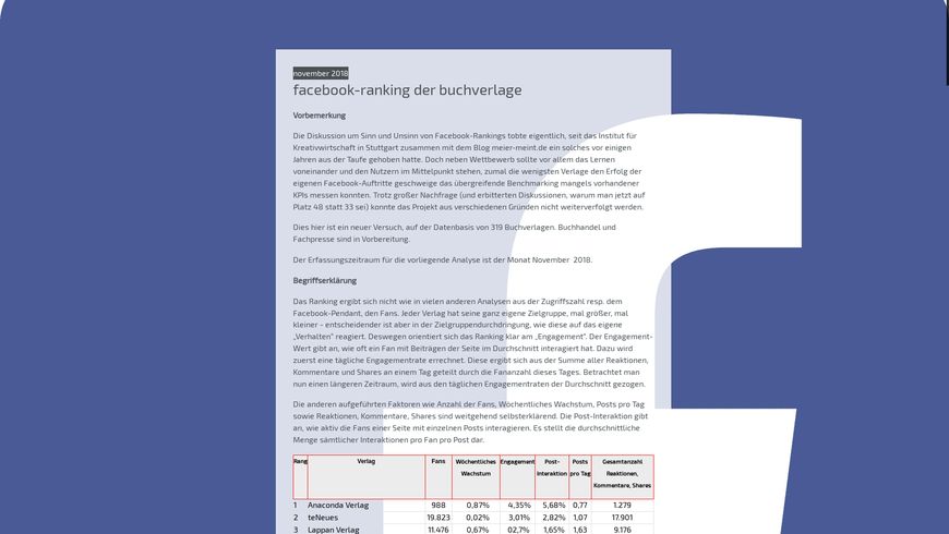 facebook-ranking der buchverlage 11/2018